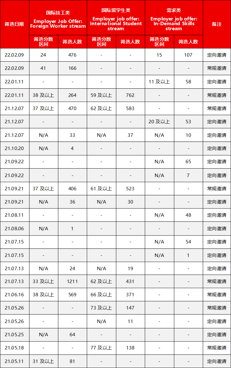 安省提名雇主担保移民2022年2月9日筛选分数: