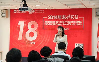 时值2014年岁末,在新的一年到来之际,2014年度美加金联客户答谢会于2014年12月27日下午2时,在美加金联会议厅如期举行。