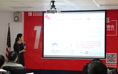 加拿大蒙特利尔银行北京分行个人银行服务部经理顾青女士正在做讲解