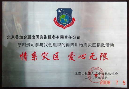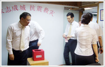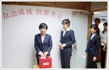 同胞罹此大难,金联公司与全体人民一样感同身受,莫不有锥心之痛。公司创办人作为一个四川人闻讯后倍感沉痛至哽咽,决定认养孤儿,并立即与四川省政府相关机构联系,着手进行遗孤的认养工作。公司工会也在第一时间郑重发出倡议:公司所有员工关注灾情,向受灾同胞伸出援手,奉献爱心,积极捐赠,众志成城,共度难关,以弘扬团结一致、同舟共济的博爱之情。倡议一发出,受到全体员工的积极响应,公司所有员工纷纷解囊,为抗震救灾奉献出自己的一片绵薄之情。