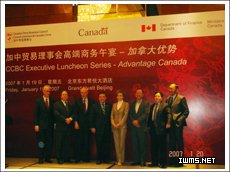 加拿大财政部长Mr. Jim Flaherty 19日在北京会见了加拿大与中国的金融及贸易领军人物,希望藉此增强加中两国的经济合作关系。 公司创办人Ms. Helen被邀请与Mr. Jim共进午餐,席间,加拿大财政部长Mr. Jim、加拿大驻华大使Mr. Robert G. Wright分别与Ms. Helen进行了合影并作了亲切的交谈。
