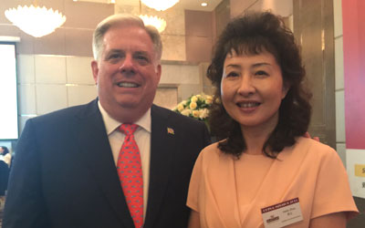 创办人Helen女士与马里兰州州长Larry Hogan先生亲密交流