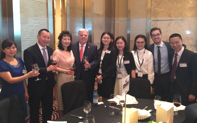 2015年6月2日,美加金联创办人Helen女士、副总经理Lisa女士受美国马里兰州州长Larry Hogan先生之邀,出席了“2015马里兰州招待晚宴”。此次马里兰州州长偕同夫人、州务卿、州企业和经济发展部、公共关系部等诸多美国政府要员一同访华,一方面为了促进中美两国在经贸投资方面的交流及互补,另一方面也向大家介绍了马里兰州的经济、交通、制造、生物医疗和良好的投资环境。 同时州长Larry Hogan先生也对美加金公司帮助数千位EB-5投资人成功移民美国、向创办人Helen女士表示感谢,他也希望在全球经济一体化的背景下,美加金联能够向马里兰州推荐更多的EB-5投资人。 ![]()