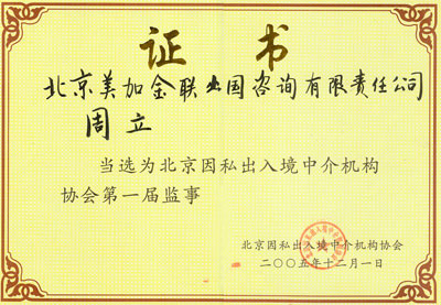 公司创办人当选为因私出入境中介机构协会第一届监事