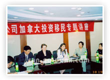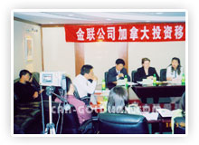 金联公司于2005年4月16日下午2:00-4:00在中粮广场7楼会议室成功举行了投资移民专题讲座,魁省移民律师Ms. Malaine Couture 及美加金联创办人Ms. Helen Zhou 分别向参会人员讲解了加拿大联邦及魁省投资移民的要求及移民局审理的新动态。最后,金联的专家现场回答了广大与会者的提问,整个会议的气氛非常的和谐。