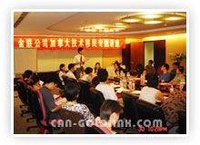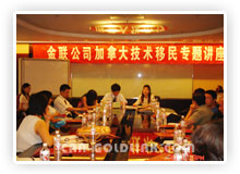 7月30日 上午,来自北京及各地的近百名客人聚集一堂,共同在中粮广场 7 层会议室听取了金联公司加拿大技术移民专题讲座。讲座上,咨询部经理Mr. Johnny为与会者讲述了技术移民的政策及移民官的审理标准,接着美加金联创办人 Ms. Helen Zhou 就金联公司的情况及如何移民加拿大进行了详细的阐述,并回答了现场客人的提问。客人同时传看了金联公司大量的经典案例。讲座闭幕后近十余位客人与金联公司签订了代理协议。