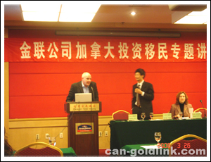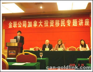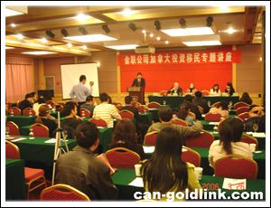 3月25日,在这个阳春三月的季节里,暖风轻拂脸庞的春意将这份感觉带到了金联大型投资移民说明会的现场。嘉宾们也都满怀着希望,满怀着对人生的理想来参加这次对他们的人生可能起到决定性作用的峰会。![]() 在金联公司副总经理Mr.Johnny的简短的开场白后,会议没有太多的冗杂的过程便正式进入了正题。 ![]() 首先,Mr.Rod—“金联移民官律师团队”的这位重量级人物出场。作为加拿大移民局前移民官,他的讲演内容足以吸引所有的与会者。整个会场寂静异常,大家都在倾听这位专家移民方面的各种政策与信息解读,并不时的爆发出阵阵掌声。 ![]() 在Mr.Rod精彩的发言后,会议的又一个高潮便掀起了。Ms. Mélanie-“金联公司移民官律师团队”的另一位重量级人物开始了她的丰富的移民信息讲述。同样,与会的各位嘉宾已经深深的陷入了如此精彩的讲演之中。整个会场在幽默的演讲中成了笑声的海洋。 ![]() 金联公司还有幸请来了最近成功的客户林先生,并现场为林先生颁发了取签信。异常喜悦的林先生现场同广大与会嘉宾分享了他的申请过程及自己的成功申请经验。 ![]() 最后,美加金联创办人Ms.Helen作了总结性的阐述,同时还就2006年投资移民新规则、移民局内部新消息、投资移民清单等广大嘉宾关心的焦点问题进行了详细的分析与讲解。 ![]() 会后,嘉宾将金联的律师及专家们围作一团分别了解自己申请投资移民的情况。最终他们都满意的离开了会场,并准备开始他们人生的新历程。金联公司也祝福他们:“好运,加拿大见!” ![]()