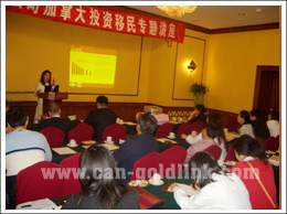 美加金联创办人、移民专家 Ms. Helen Zhou在随后的演讲中主要剖析了2007年度移民新政策、投资移民再提速、移民局内部消息等吸引人的话题,使得整个会场充满了浓郁的气息。