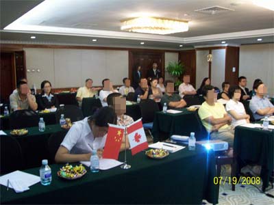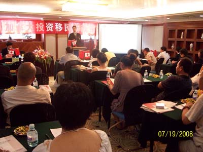7月19日,在这距离奥运会开幕还有20天的日子里,在北京新闻大厦酒店四层第三会议室里,40多名企业家参加了我公司举办的加拿大投资移民新政策说明会。![]() 首先,由加拿大投资移民律师Alexander为大家介绍加拿大魁北克投资移民的政策、法规,我公司副总经理Johnny同声翻译。 ![]()