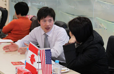 美加金联公司创办人、移民专家Ms.Helen Zhou在下半场,为大家详细介绍了加拿大各个省份的自然、社会环境,及风土人情等基本情况,并通 过生动的实例,以及自己在国外旅居多年的丰富经验,深入分析了当地的福利体系、教育制度和住宅等,加深了客户对加拿大投资移民硬件优势的理解。 ![]() 客户纷纷与美加金联顾问详细的一对一咨询