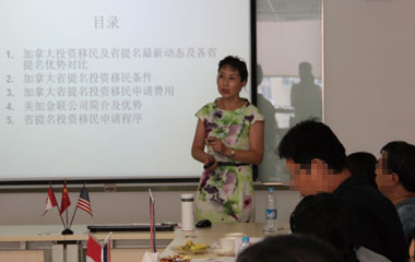 2012年9月22日下午2点,加拿大投资移民省提名说明会准时在美加金联会议厅隆重开讲。美加金联为有意移民加拿大的朋友带来了一场别开生面的深度解析!会场气氛隆重而热烈。美加金联公司创办人Helen女士作为会议主讲嘉宾参与了本次活动。![]()