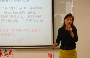 2012年12月08日,下午14时,由美加金联出国咨询服务有限责任公司主办的加拿大魁北克投资移民说明会成功举行!美加金联公司创办人Helen女士作为会议主讲嘉宾参与了本次活动。 加拿大魁北克移民局计划于2013年4月1日开启新一轮的魁北克投资移民,配额数量为全球限额2700名!美加金联投资移民专家Helen在讲座中详细分析了加拿大魁北克2012年限额形式及2013年魁北克投资移民申请的情况预测。Helen在讲座中指出:2013年4月1日魁北克投资移民重启,将是加拿大投资移民低门槛、高回报政策下的最后一次机会!2013年04月01日申请的情况,会同2011年7月1日联邦投资移民限额接收700名一样,2700个名额会在两个小时内"瞬间额满"! 目前加拿大魁北克投资移民资金要求仍为总资产160万加币,过去5年中有2年或以上的管理经验,投资80万加币或一次性支付80万加币5年贷款利息即可。美加金联移民顾问为客户详细解析了加拿大魁北克投资移民政策的趋势及加拿大魁北克投资移民的新动态。Helen在讲座中深入解析了加拿大魁北克投资移民优势、条件、程序、费用等问题,得到了与会人士的重点关注! ![]()