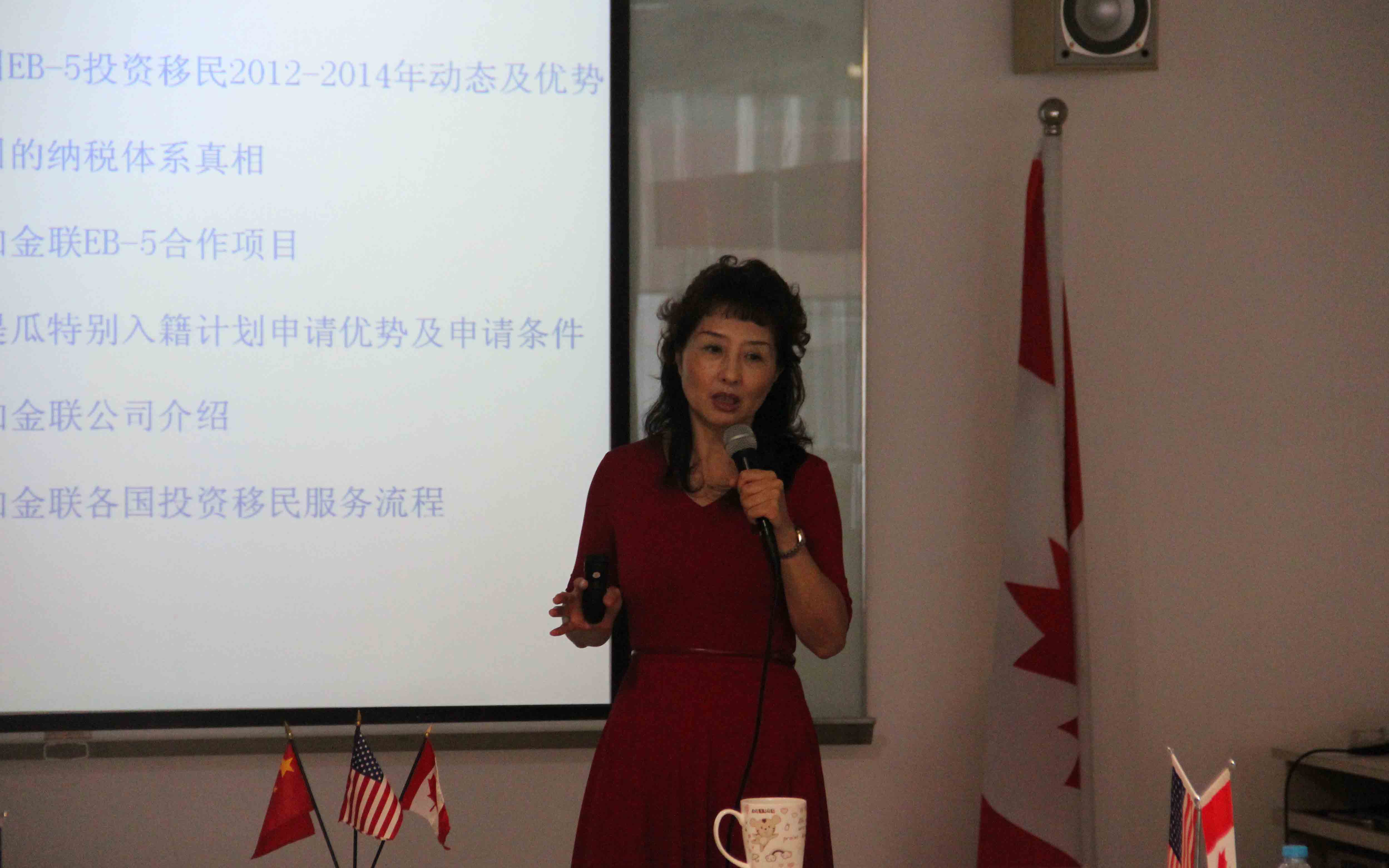 美加金联创办人Ms.Helen讲解美国EB-5投资移民新动态、优势以及安提瓜特别入籍计划项目优势、申请条件以及西班牙投资移民的简介 到场客户认真聆听专家细致的解说 |