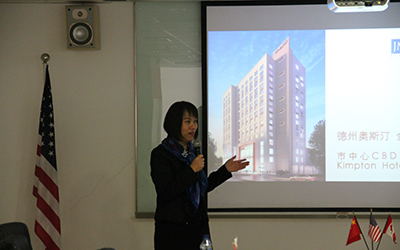 德州奥斯汀金普顿精品酒店EB-5投资项目美升益华公司执行总监Ms.Judy Li就该项目及项目优势进行阐述