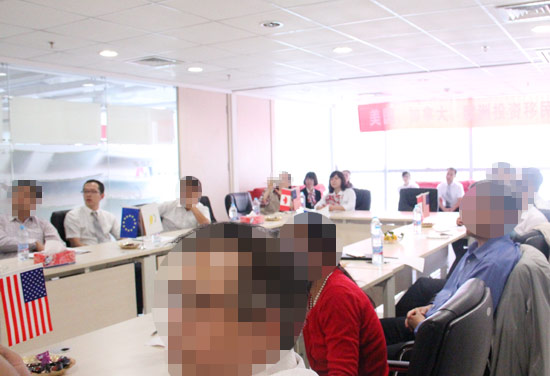 Ms. Helen Zhou为到场客户详细解说加拿大曼省提名移民项目、加拿大魁北克企业家移民项目、加拿大联邦创业投资移民项目、美国德州奥特莱斯投资移民项目、美国艾士得涂料投资移民项目、安提瓜投资移民项目,优势、申请条件、及申请流程等重要信息