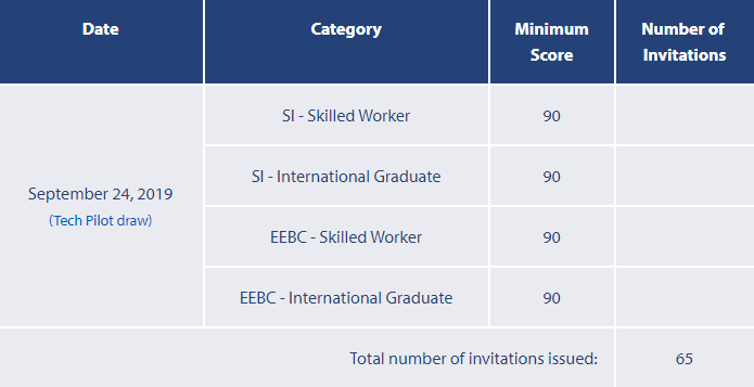 BC省技术移民2019年9月24日筛选分数出台: