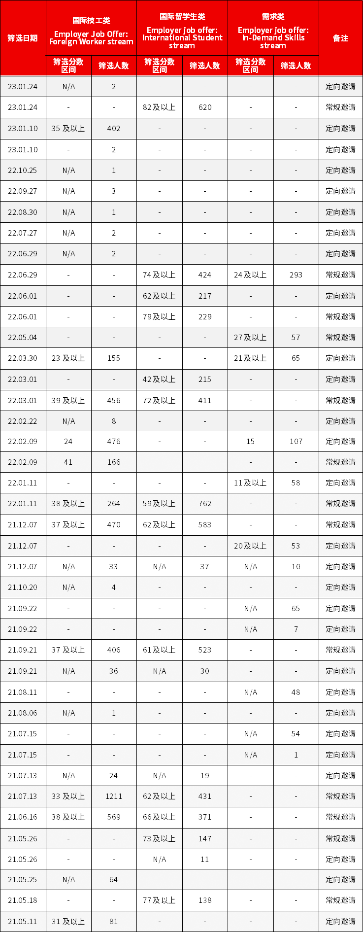 美加金联从加拿大安省移民局获悉:2023年01月24日加拿大安省省提名雇主担保 - 国际技工类(Employer Job Offer: Foreign Worker stream)移民筛选分数出台:(Targeted draw for Economic Mobility Pathways Project candidates)经济流动途径项目候选人定向筛选:发出2份邀请。