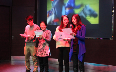 颁奖完毕后,美加金联2014年度职工大会在公司的部分就暂告一段落,大家一同驱车前往天津,大巴车行至饭店,全体同仁享用了公司精心安排的星级晚宴。席间,大家举杯向创办人Helen女士、Teresa女士表达新春祝福与谢意。晚宴后,大巴继续前行并于20:00时抵达下榻酒店,并在稍事休息后在此举行美加金联2014年职工联欢会。联欢会采取抽奖、游戏和文艺节目穿插进行的方式,会上,各部门纷纷派代表登台为大家献上了精彩的节目,咨询部同事表演的三句半、行政部美女们献上的小合唱等节目不断引来台下热烈的掌声与喝彩声,接下来的耳耳相传、七拼八凑等游戏环节更是将晚会现场推向了一个又一个高潮。笑声、欢呼声,声声尽情,而穿插其中激动人心的要属幸运大抽奖活动,随着抽奖号码的一一公布,在场同仁们无不欢呼雀跃、振奋精神,欣喜之余也对公司的关爱表示真诚的感谢。