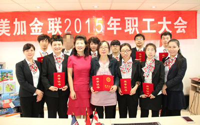 ![]() 美加金联公司创办人Helen女士新年致辞 首先,美加金联创办人Helen女士登台发表新年致辞,其中总结和分享了美加金联2014年的收获与成长,并对2015年公司的战略部署和整体工作做了重要指示。Helen女士指出,面对2014年瞬息万变的移民政策,美加金联全体同仁彰显了强大的实力与高超的专业水平,做到了提前预知、提前分析、提前应对,从而完成了一次又一次华丽的转身,开辟了2014年国内移民项目多样化的新格局。正是有了各位同事的辛勤付出,才有我们美加金联公司今天的辉煌。2015年我们将为广大客户奉上更多优质的移民项目,为客户提供更专业、更高品质的服务。 ![]() 2015年美加金联公司员工合影 2014年注定是不平凡的一年,在这一年中公司涌现出很多表现优秀的部门和员工,本着公正公平的原则,由公司全体员工投票、经经理会表决,最终评选出了在2015年度表现突出的部门和员工。主持人逐一宣布获奖部门及人员名单。创办人Helen女士、副总Lisa女士分别为获奖部门及个人颁发证书和奖金。在美加金联过去的一年乃至数年中,正是不断涌现的优秀员工以及老员工充分发挥自己的积极带头作用,与公司同舟共济,攻坚克难,使得公司的凝聚力不断增强。每一位获奖员工都十分感谢公司给予自己一个与之同舟共济的舞台,并表示将继续为公司奉献自己的力量。2015年,我们与公司一起蒸蒸日上。最后,Helen女士、Lisa女士亲切地与获奖者合影留念,在座的各位同仁也把真诚、热烈的掌声送给台上的榜样! ![]() 创办人Helen女士以及、Lisa女士同年度各奖项获得者合影 颁奖典礼结束后,美加金联2015年度职工大会在公司的部分就暂告一段落,大家一同驱车前往天津。行至饭店后,全体同仁共同享用了公司精心安排的星级晚宴。席间,大家举杯向创办人Helen女士、Lisa女士表达新春祝福与谢意。晚宴后,大巴继续前行并于晚8点之前抵达下榻酒店,在稍事休整后举行了美加金联2015年职工联欢会。联欢会采取节目汇演、游戏、抽奖穿插的方式进行,期间,各部门纷纷派代表登台为大家献上了精彩的节目,网络部组合献上的相声表演、文案部的美女们等节目不断引来台下热烈的掌声与喝彩声,接下来的传吸管、萝卜蹲等经典游戏更是将晚会现场推向了一个又一个高潮。笑声、欢呼声,声声尽情,而穿插其中激动人心的要属幸运大抽奖活动,随着抽奖号码的一一公布,在场同仁们无不欢呼雀跃、振奋精神,欣喜之余也对公司的关爱表示真挚的感谢。 ![]() 公司员工表演节目 ![]() 丰厚的活动奖品 |