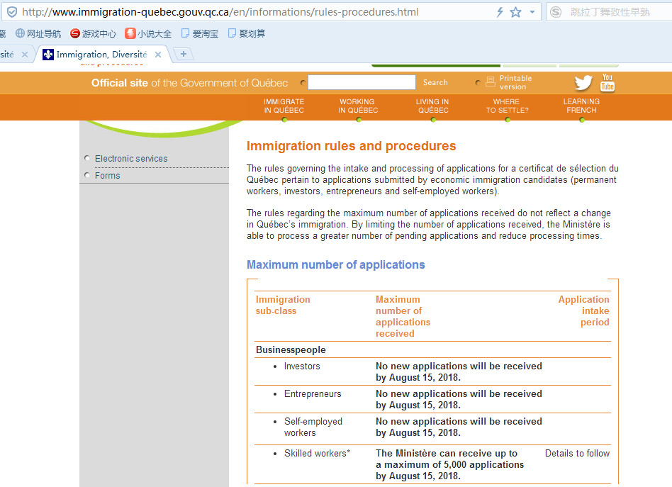 加拿大时间2018年3月29日,魁北克移民局公布:从2018年4月1日到2018年8月15日,CSQ–甄选证书将不再接收投资者,企业家和自雇移民项目计划。预示着2018年8月15日前魁北克企业家移民项目还是暂时关闭状态!