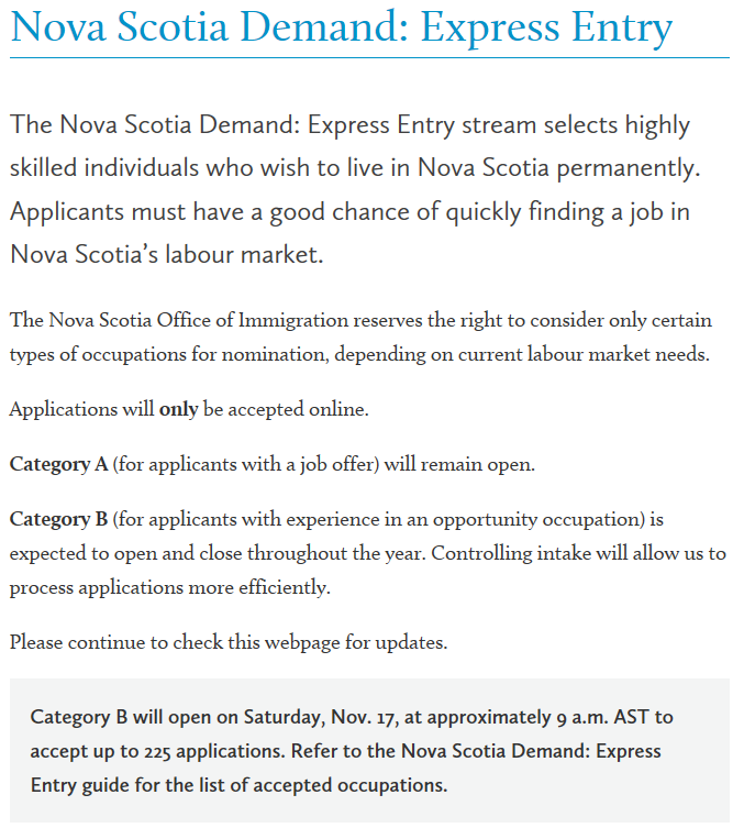 加拿大新斯科舍省技术移民EE通道B类申请开放【金联原创】