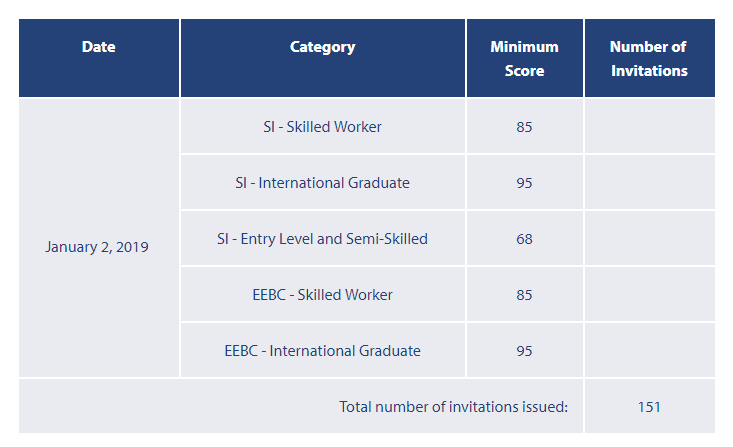 美加金联从加拿大BC省移民局获悉:2019年1月2日BC省移民局公布技术移民筛选分数:技术工人类别(SI-Skilled Worker)筛选分数85分,国际留学生类别(SI-International Graduate)筛选分数95分,中低技术工人类别(SI-Entry Level and Semi-Skilled)筛选分数68分,快速通道技术工人类别(EEBC-Skilled Worker)筛选分数85分,快速通道国际留学生类别(EEBC-International Graduate)筛选分数95分,本轮筛选共计发出151份邀请。