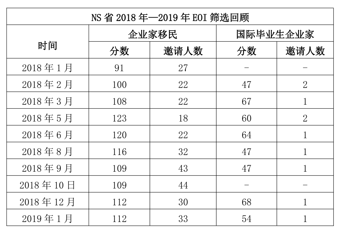 美加金联从加拿大NS省移民局获悉:2019年1月7日NS省企业家移民EOI筛选分数112分,发出33份邀请;国际毕业生企业家筛选分数54分,发出1份邀请。