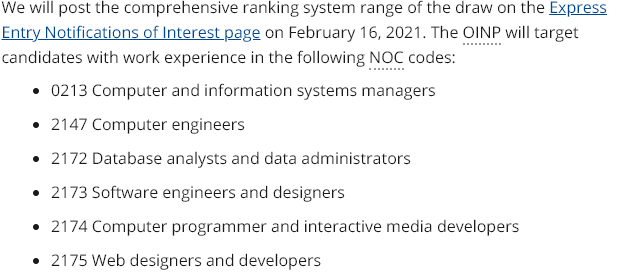 美加金联从加拿大安省移民部获悉:2021年2月16日,安省EE人力资源优先类移民项目(Human Capital Priorities Stream)发出1,186份意向通知(NOI),申请人EE综合评分(CRS)得分范围在453至467分之间。安省政府希望通过这种有针对性的筛选,来帮助更多安省的科技领域企业,更加轻松地招募到来自世界各地的专业技术人才。本次共邀请了六类职业。