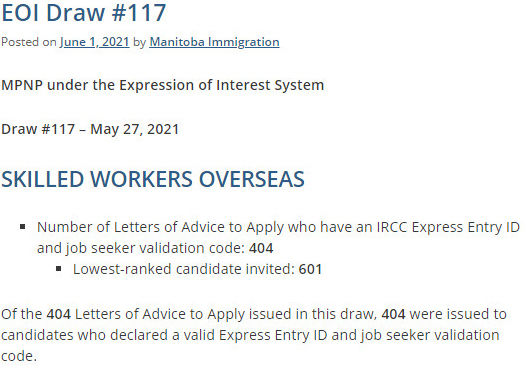 美加金联从曼省移民部获悉:2021年5月27日,曼省提名类别联邦技术移民EE快速通道筛选分数601分,发出404份邀请。