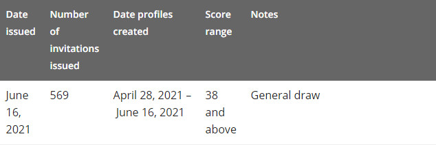 美加金联从加拿大安省移民局获悉:2021年6月16日,安省省提名雇主担保类移民国际技工类(Employer Job Offer: Foreign Worker stream)筛选分数38分,发出569份邀请。
