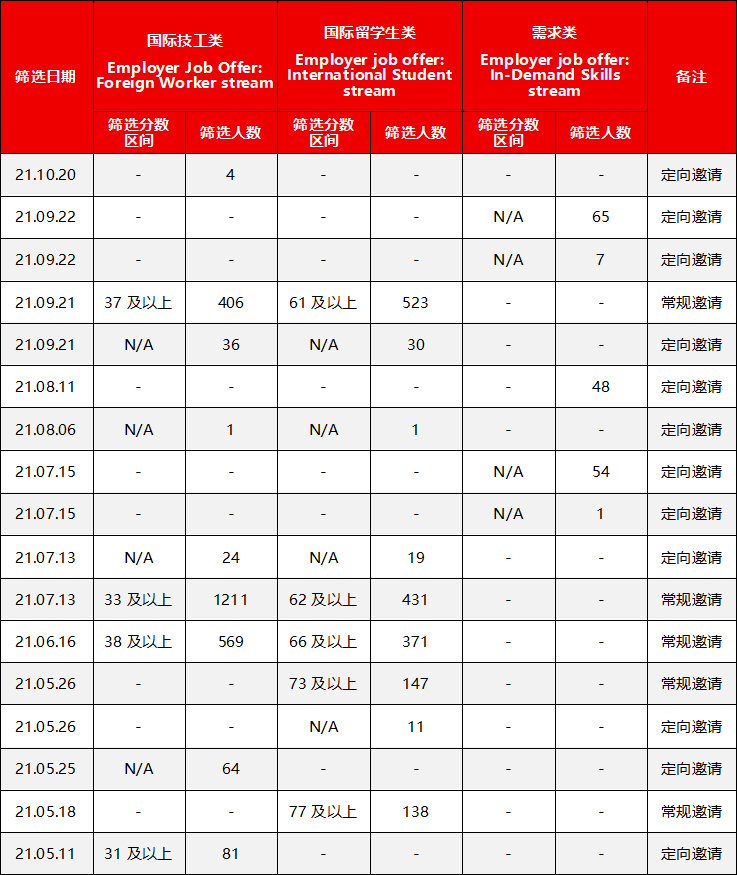 安省提名雇主担保移民2021年10月20日筛选分数: