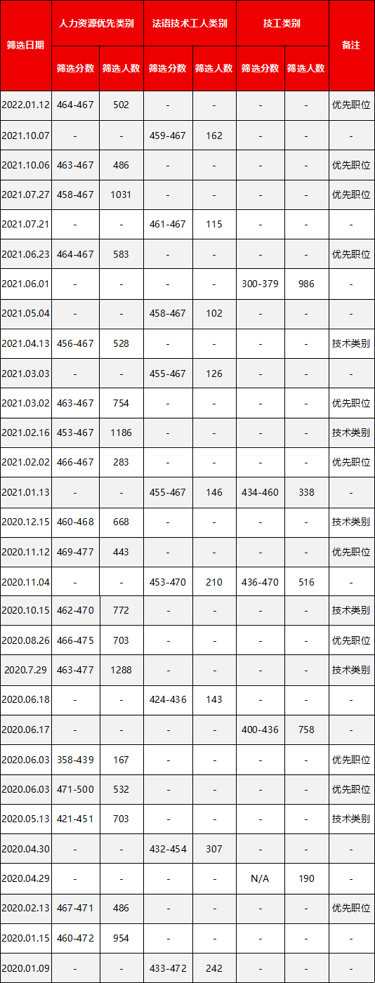 美加金联从加拿大安省移民局获悉:2022年1月12日,安省EE人力资源优先类移民项目(Human Capital Priorities Stream)发出502份意向通知(NOI),申请人EE综合评分(CRS)得分范围在464至467分之间。