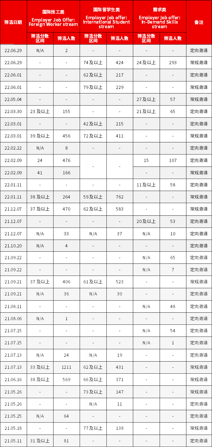 安省提名雇主担保移民2022年06月29日筛选分数: