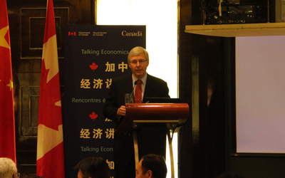 2014年5月21日,美加金联创办人Helen女士受加拿大驻华大使赵朴(Guy Saint-Jacques)先生及蒙特利尔银行金融集团副董事长林凯文博士之邀,于四季酒店出席了“加中经济讲坛”主题演讲。![]() 美加金联创办人Helen女士与加拿大驻华大使赵朴(Guy Saint-Jacques)先生亲切交流 赵朴(Guy Saint-Jacques)先生在主题演讲中指出:在不断变化的世界中,加拿大正处于稳定和增长的交叉路口,加拿大应积极加强与中国在经济、贸易及全球国际化企业间的交流和合作.并认为在未来,加拿大还会更多的吸纳来自中国的企业高管、专业精英等人才移民到加拿大. ![]() 加拿大驻华大使赵朴(Guy Saint-Jacques)先生发表主题演讲